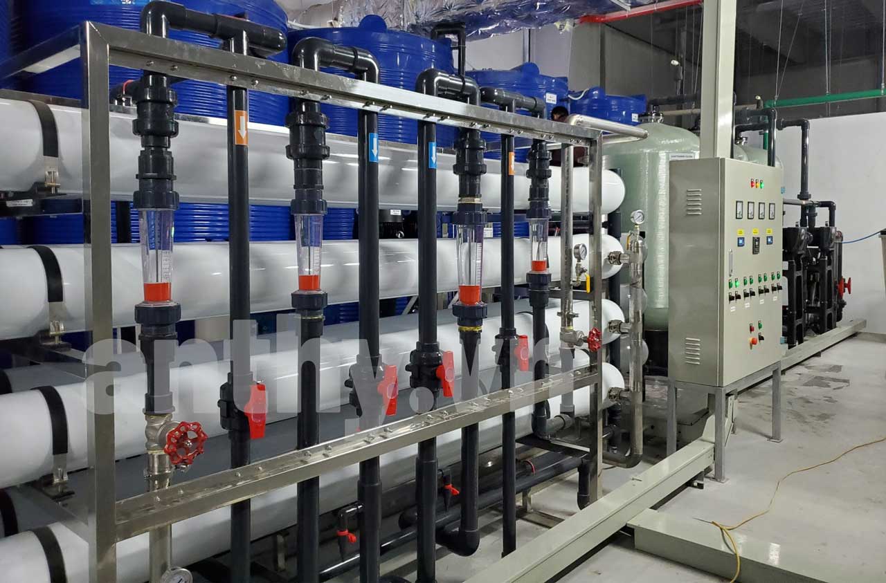 - Hệ thống RO 2 cấp: Công suất 15m³/giờ, nước thành phẩm đạt độ dẫn<5μS/cm